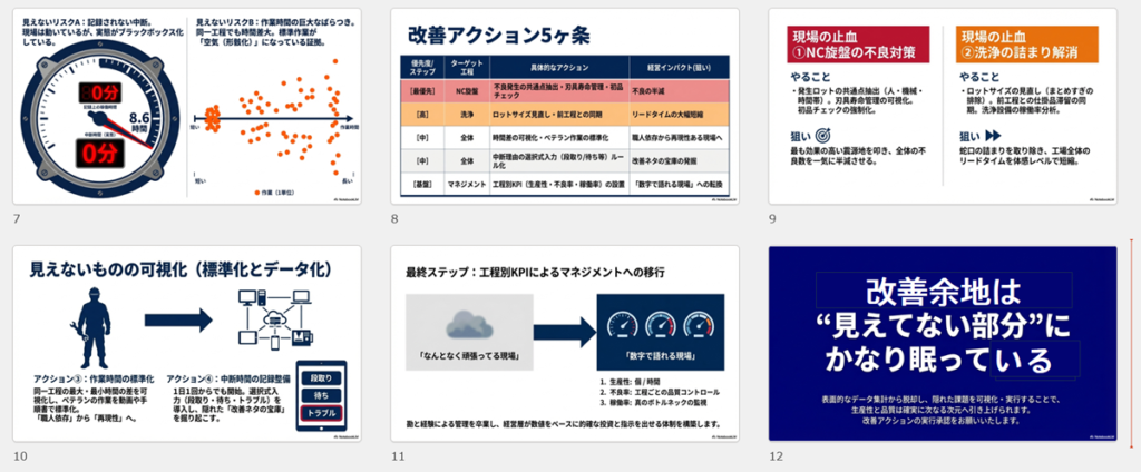 つまり、i-PROWのような生産管理システムがあるからこそ、報告資料の作成が「感覚」ではなく「根拠ある整理」に変わります。